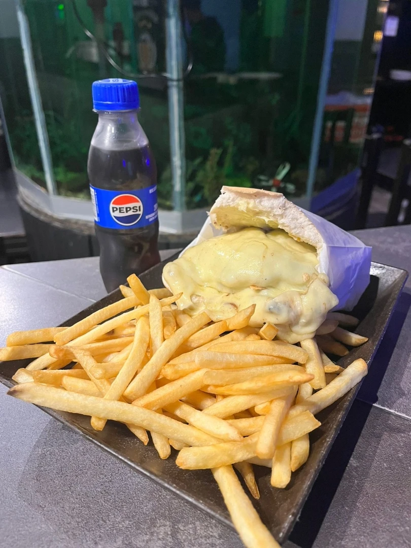 Hamburguer Duplo, Queijo Duplo e maionese. Acompanhamento de Batata e 1 Refrigerante de 200 ml